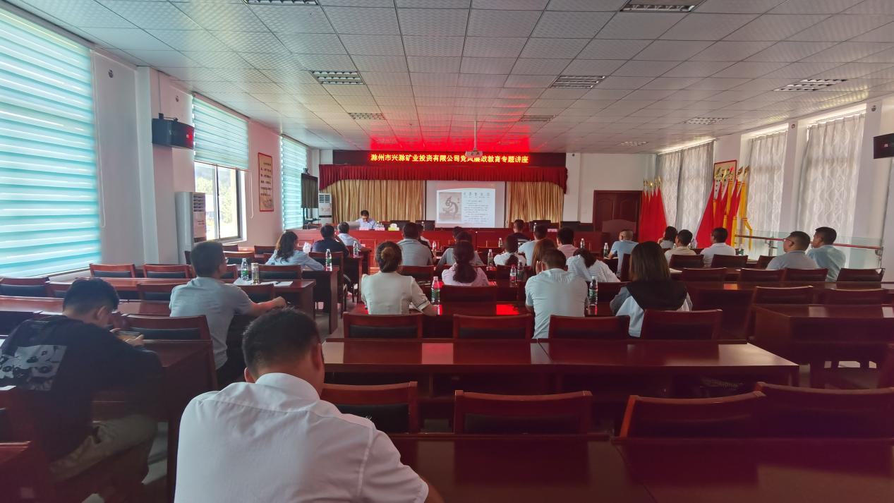 為進一步推深做實黨史學(xué)習教育,切實加強公司黨風廉政建設(shè)和反腐敗工作,促進黨風廉政教育在基層一線落地生根,7月23日,市礦投公司邀請市紀委監(jiān)委駐市財政局紀檢監(jiān)察組副組長張桂林赴興明礦業(yè)調(diào)研指導(dǎo)并作黨風廉政教育專題講座。公司經(jīng)營層及相關(guān)工作人員約30余人聆聽了講座。