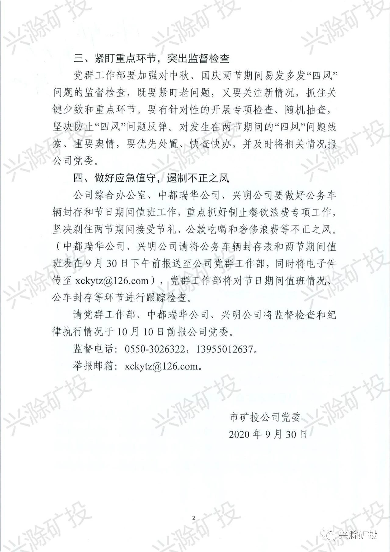 市礦投公司關(guān)于加強(qiáng)2020年中秋國慶兩節(jié)期間廉潔紀(jì)律工作的通知