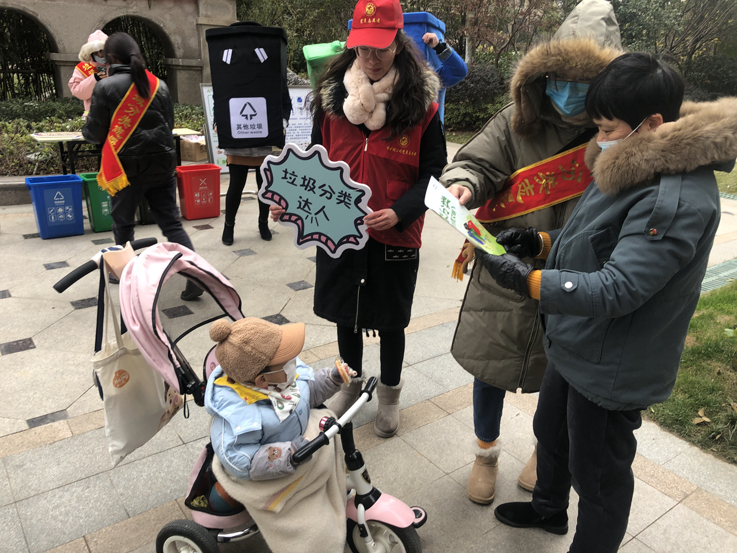 活動(dòng)中,志愿者們身穿“可回收物”、“廚余垃圾”、“有害垃圾”、“其他垃圾”四色玩偶服,通過(guò)向居民發(fā)放宣傳單頁(yè)、開展“垃圾分分樂”、“垃圾分類跳棋”游戲等方式,向其宣傳垃圾分類相關(guān)知識(shí)。活動(dòng)現(xiàn)場(chǎng)氣氛火熱,社區(qū)居民不畏嚴(yán)寒,紛紛從家中拿出廢舊電池、舊水銀溫度計(jì)等有害垃圾換取垃圾袋。