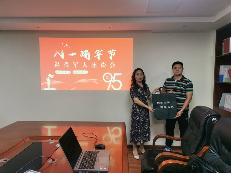 集團(tuán)公司黨委委員、黨支部書(shū)記向集團(tuán)公司本部退役軍人表示節(jié)日的問(wèn)候和美好祝福,對(duì)退役軍人做出的成績(jī)給予充分肯定,同時(shí)勉勵(lì)他要退役不褪色,繼續(xù)弘揚(yáng)“八一”精神,扎扎實(shí)實(shí)做好本職工作,為公司發(fā)展作出更大貢獻(xiàn)。