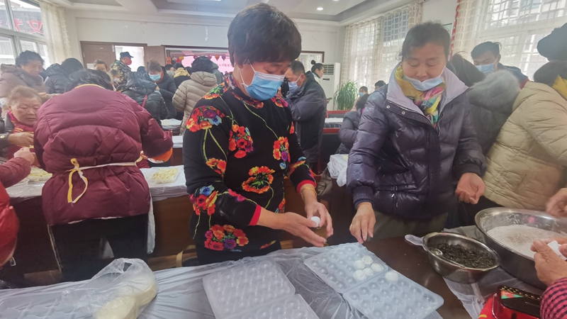 演出結(jié)束后,志愿者與社區(qū)特扶家庭一起動手包餃子、包湯圓,當(dāng)志愿者們把充滿美好寓意的熱騰騰的湯圓送到居民手里,大家都露出開心歡樂的笑容。