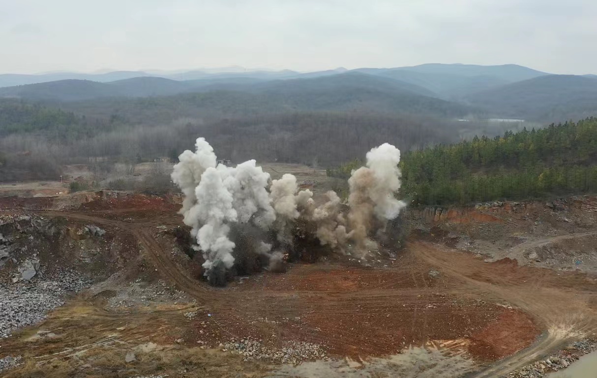 “3、2、1,起爆!”,2月18日(農(nóng)歷正月十八)上午11時(shí)58分,伴隨“砰”的一聲巨響,安徽省全椒縣馬塘湖整合礦區(qū)建筑石料用灰?guī)r礦900萬(wàn)t/a露天采礦工程順利完成首次爆破。