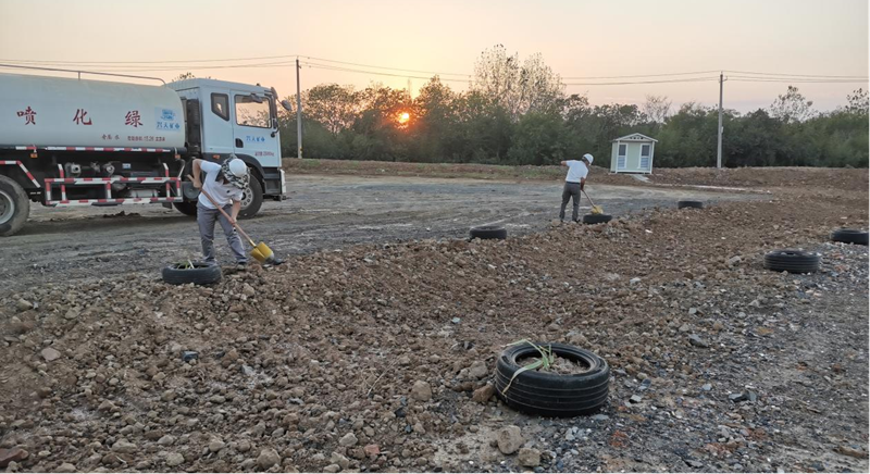 在具備種植條件后,公司陸續(xù)開展移栽樹木、種植花草、澆水養(yǎng)護(hù)等工作。經(jīng)過一個多月的努力,原本荒蕪的礦區(qū)已經(jīng)悄然發(fā)生變化,路邊播撒的草種和格?;ǘ家寻l(fā)了芽。放眼望去,一抹抹淡綠色生機(jī)盎然。
