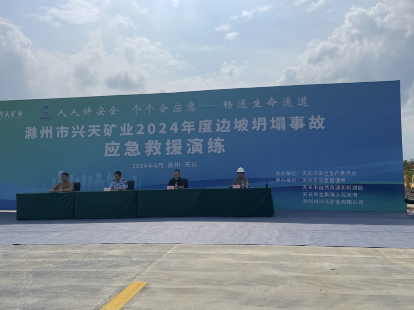 為提高突發(fā)事件應(yīng)對能力,檢驗突發(fā)事件應(yīng)急預(yù)案可操作性,6月27日,興天礦業(yè)組織開展邊坡坍塌事故應(yīng)急救援演練,天長市自然資源和規(guī)劃局以及金集鎮(zhèn)政府受邀蒞臨指導(dǎo)。